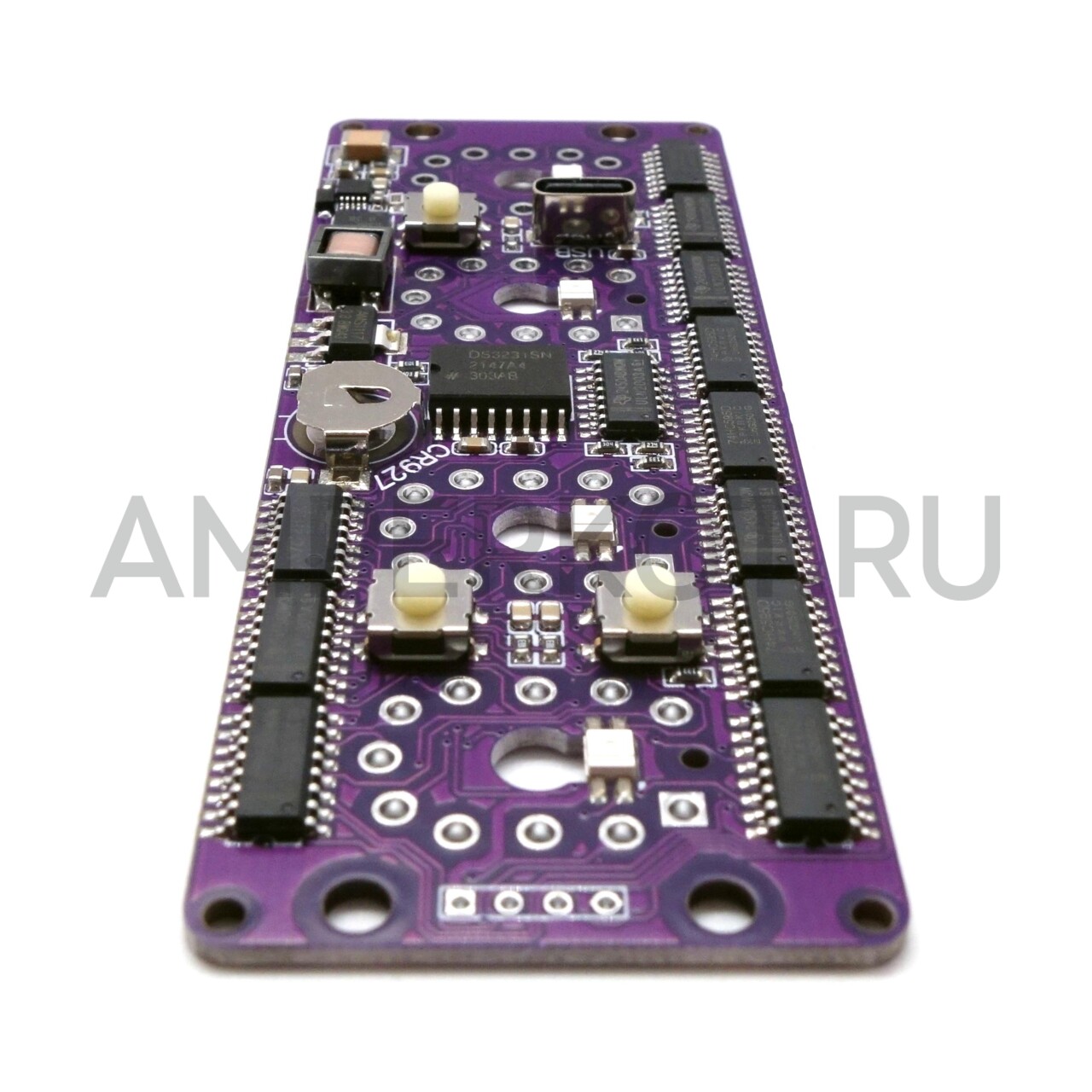 Пользователю необходимо установить лампы ИН-12 и, при необходимости, неоновые индикаторные лампы ИН-3. В качестве часов реального времени на плате установлена высокоточная микросхема DS3231SN (необходимо установить элемент питания SR927). Под каждой лампой установлен RGB светодиод для реализации подсветки ламп. Для питания необходим источник напряжением 5V/2А (Type-C). Плата поддерживает 24-х часовой формат отображения времени, функцию обновления лампы каждые 19 минут. Будильник и управление с пульта не предусмотрены. Установка времени и цвета подсветки осуществляется посредством трех кнопок.