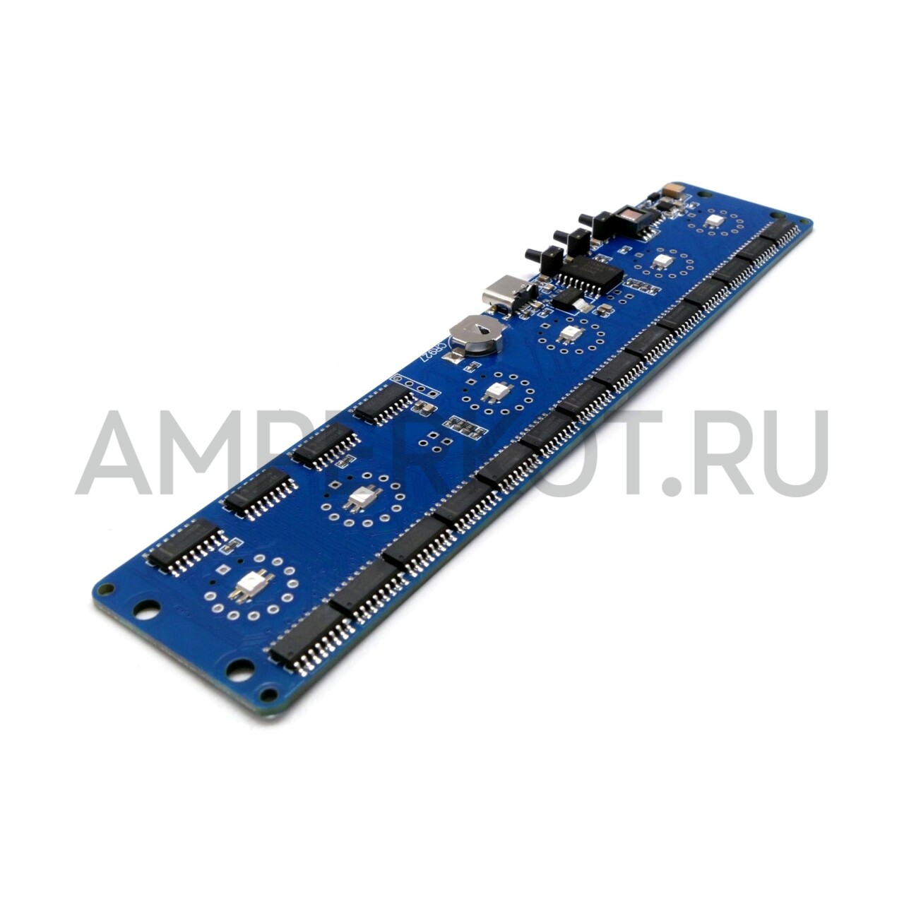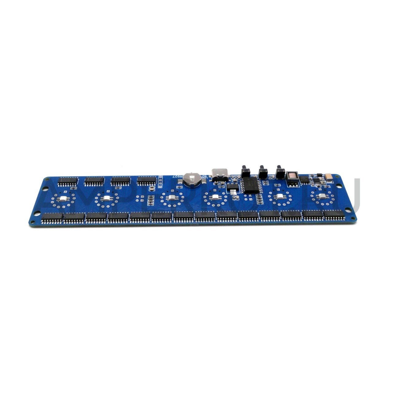 Плата построена на базе микроконтроллера STC8H1K08 и предназначена для установки 6 газоразрядных индикаторов ИН-14. Плата поставляется в собранном виде. Размеры платы: 163х35 мм.