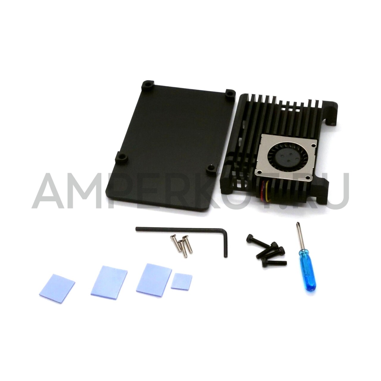 Корпус-радиатор для Raspberry Pi 5 выполнен из алюминиевого сплава в форме “сендвича”, обеспечивающего полную защиту одноплатного компьютера и отвод тепла как от нижней стороны платы, так и от элементов, расположенных на верхней стороне платы. Конструкция радиатора предусматривает доступ ко всем интерфейсам Raspberry Pi 5, проста в сборке и эффективна с точки зрения отвода тепла с использованием вентилятора с регулируемой скоростью вращения. Рекомендован для использования в условиях высокой нагрузки на Raspberry Pi 5.