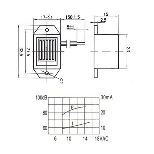 Миниатюрный электромеханический зуммер издает громкий вибрирующий звуковой сигнал на частоте около 400 Гц и звуковым давлением более 75 дБ. Может использоваться в качестве сигнализирующего устройства или для отпугивания грызунов.