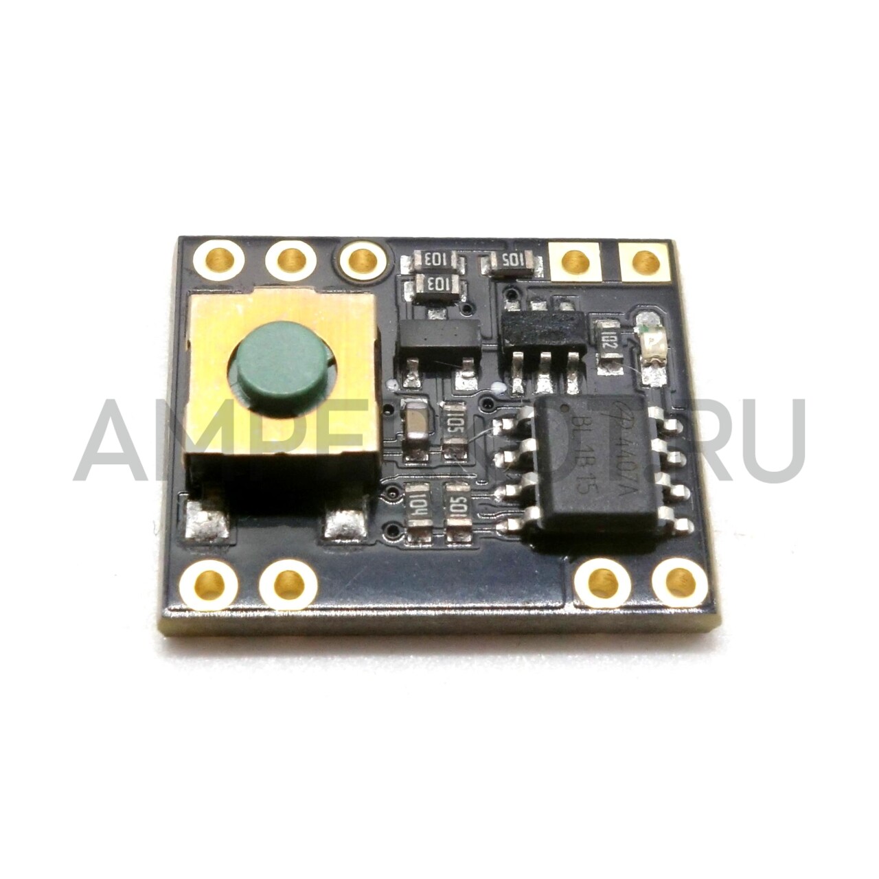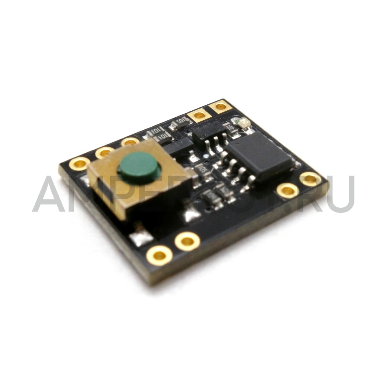 Модуль представляет собой триггерную кнопку и позволяет включать и выключать питание нагрузки нажатием кнопки. При подаче питания выход кнопки находиться в состоянии выключен. Способен коммутировать напряжение постоянного тока от 3.3 до 20V. Максимальный ток нагрузки до 11А. Ток в режиме ожидания 0.01мА.