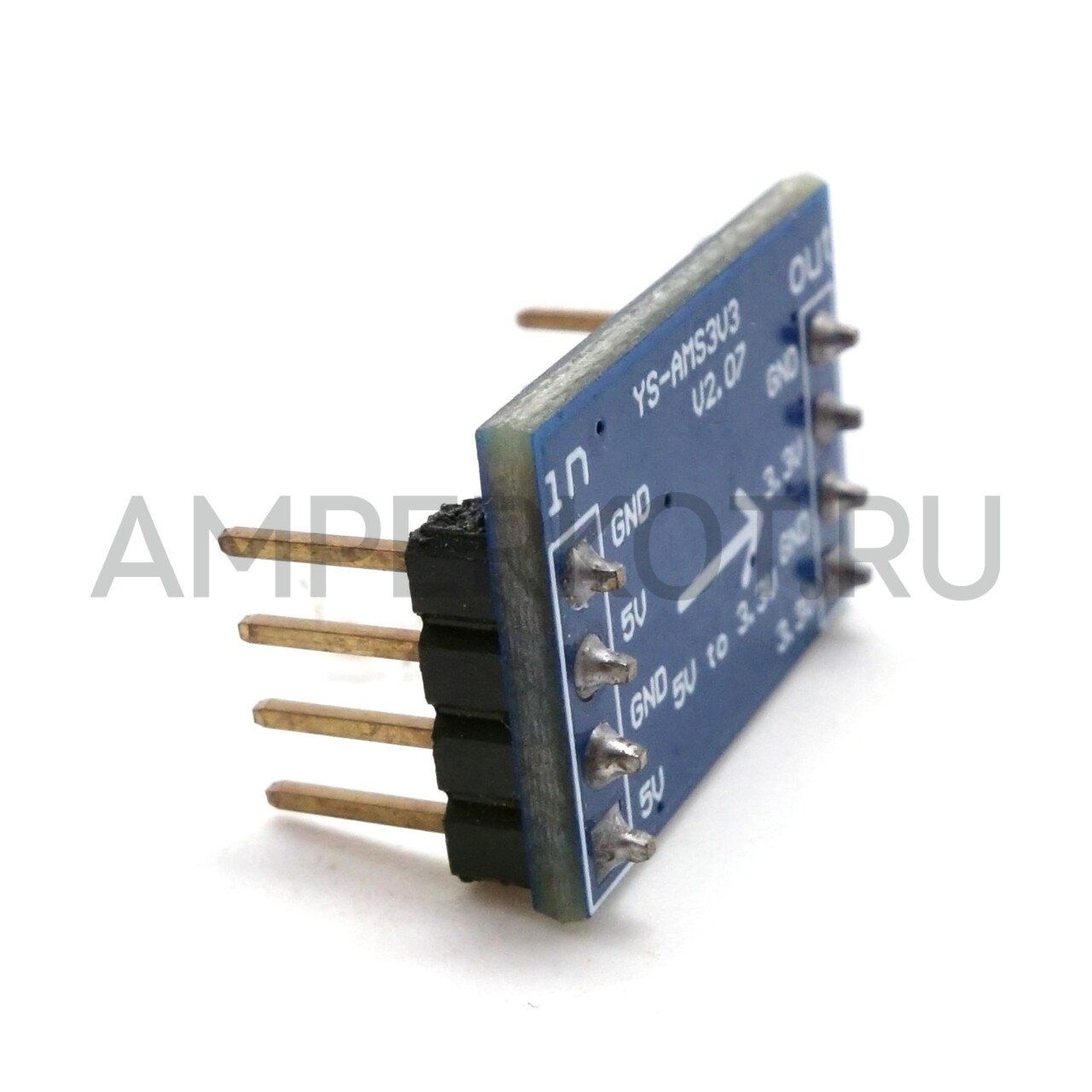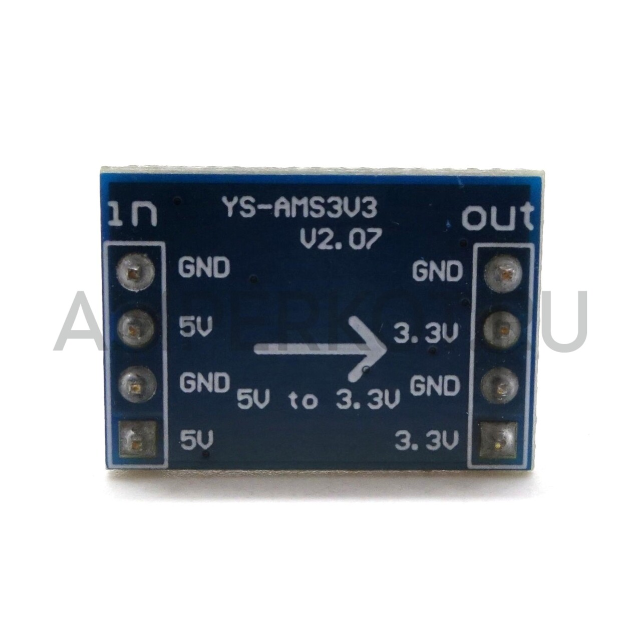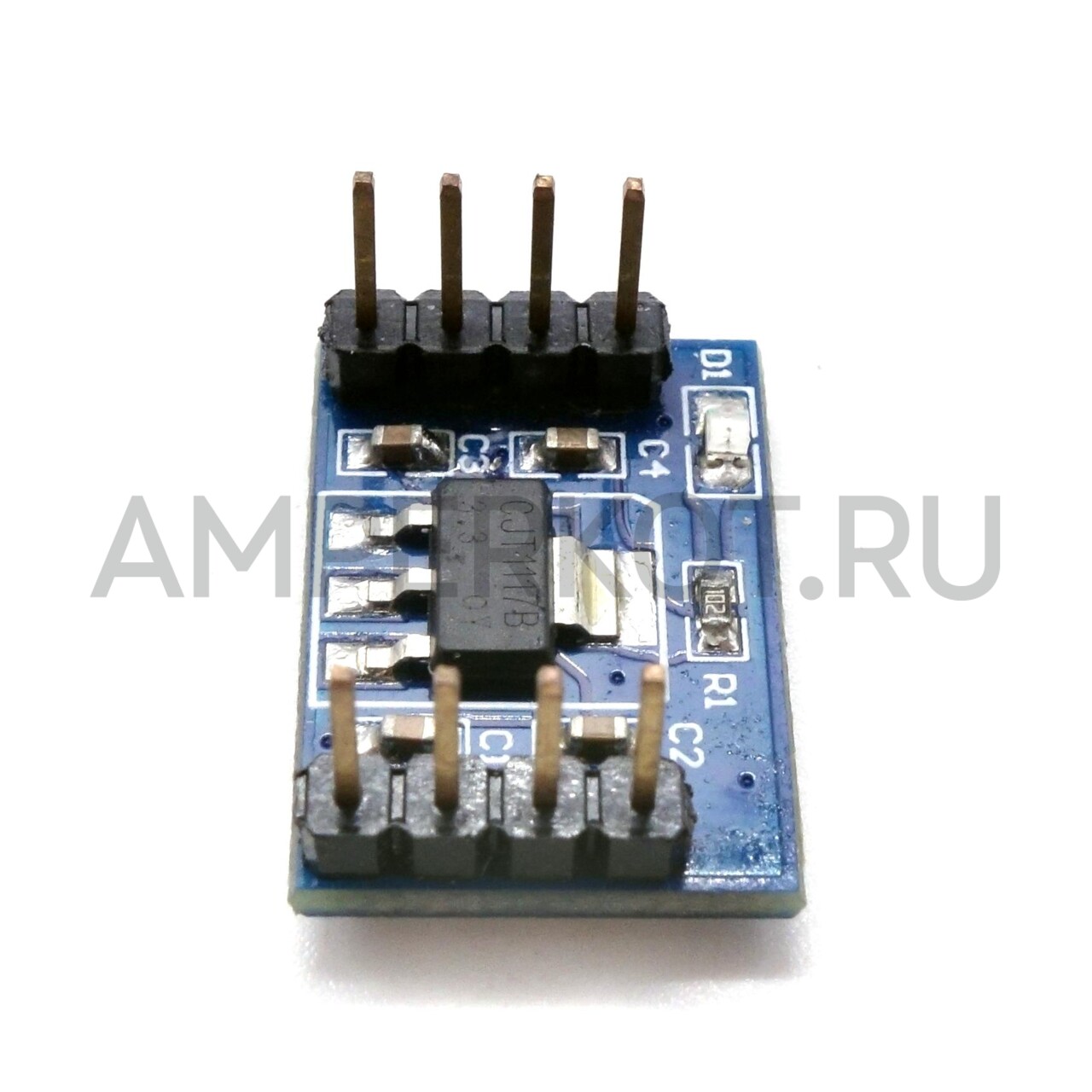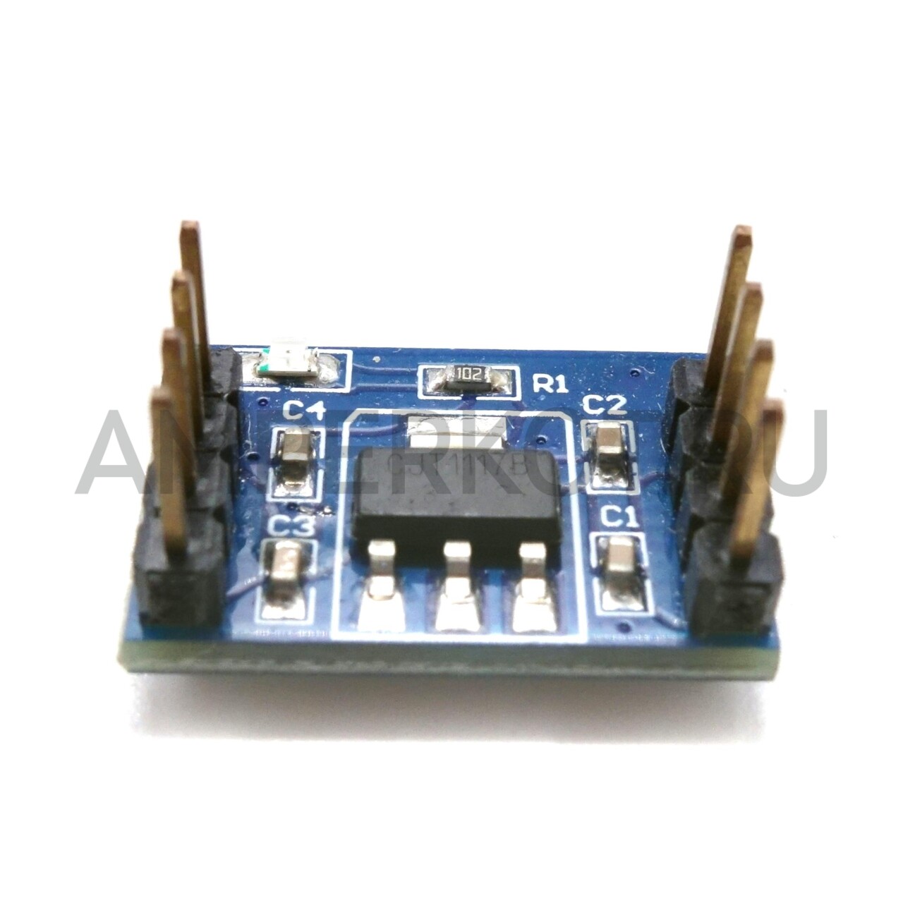 Модуль регулятора напряжения на базе AMS1117 позволяет преобразовать входное напряжение 5V в 3.3V на выходе с максимальным током до 1А. Модуль выполнен в виде DIP модуля, который можно установить в штыревой разъем или припаять к плате. Модуль оснащен сдвоенным входом и выходом, что не только улучшает токовые характеристики модуля, но и обеспечивает более высокую надежность. Для индикации работы используется светодиод. Размер модуля 19.6 х 13.9 мм.