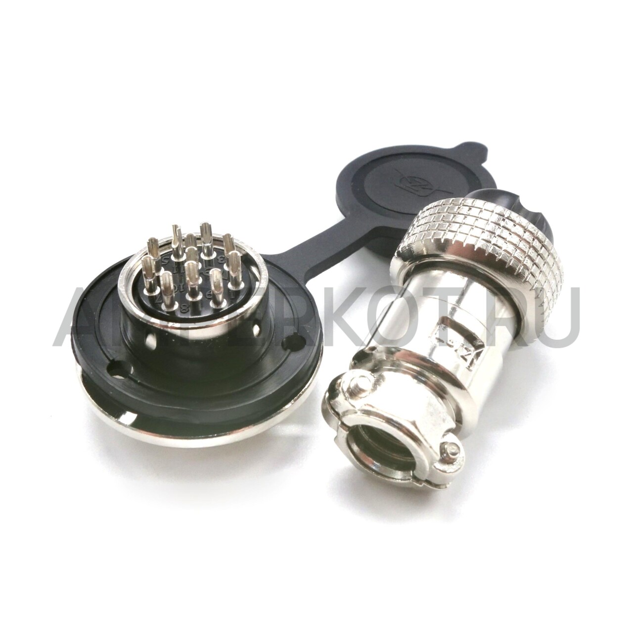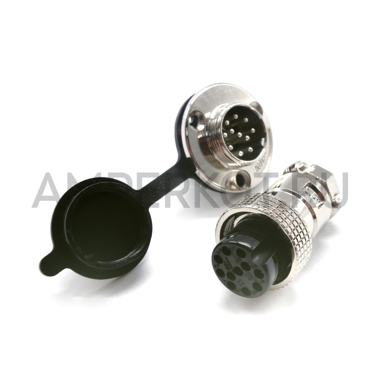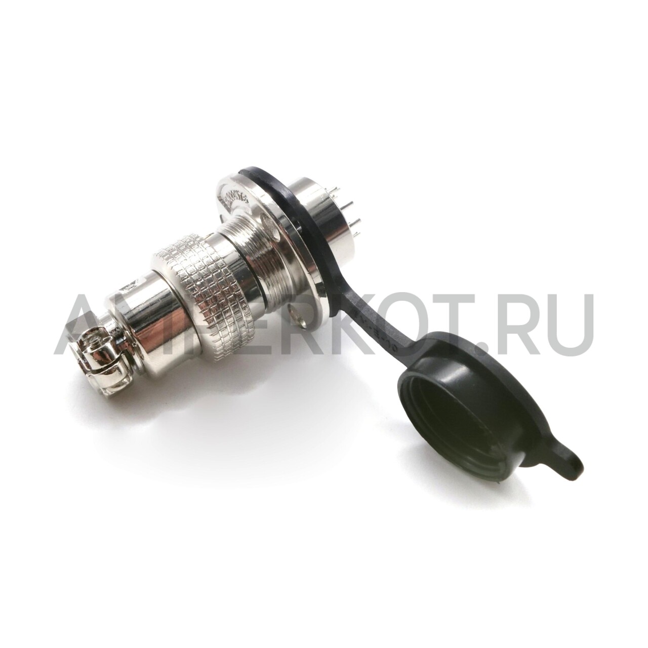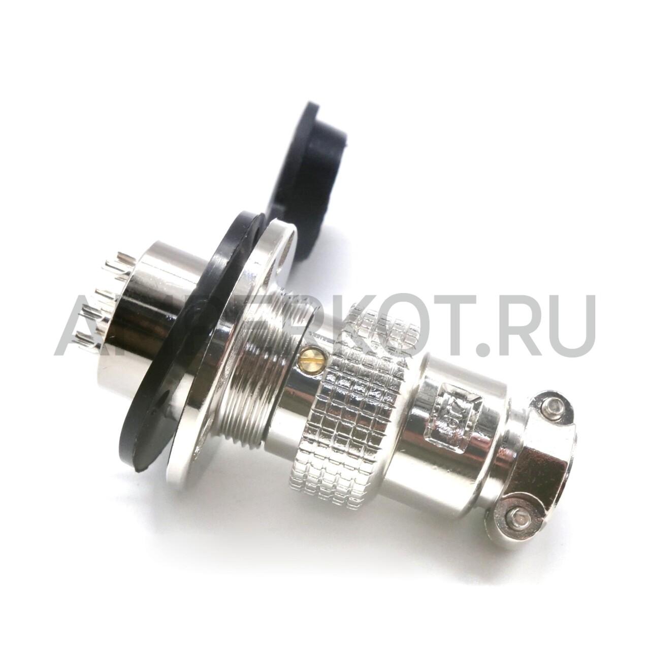 Комплект водонепроницаемого цилиндрического, кабельного разъема GX19 включает штекер, гнездо с фланцем для установки на панель, а также водо- пылезащитную крышку. Разъем имеет 11 контактов и позволяет коммутировать напряжение до 150V с максимальным током 5А. Корпус разъема изготовлен из цинковый сплав. Контакты медные, луженые, под пайку.