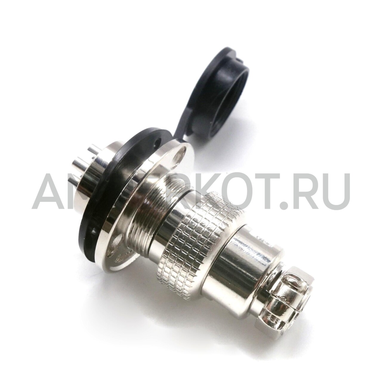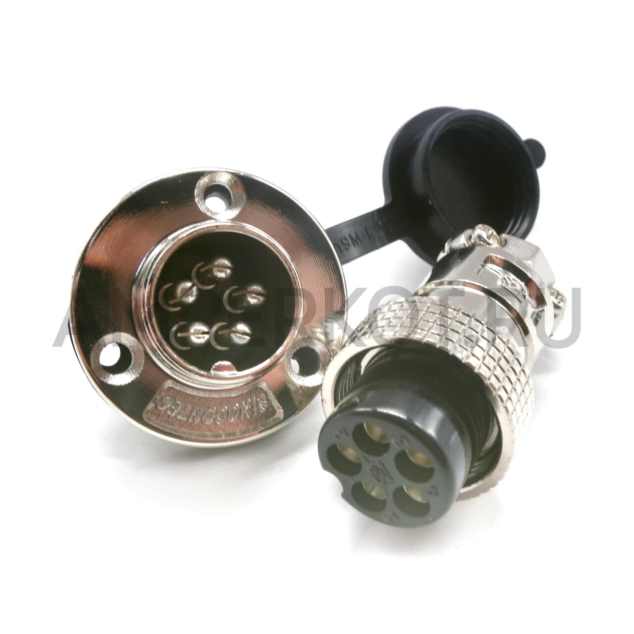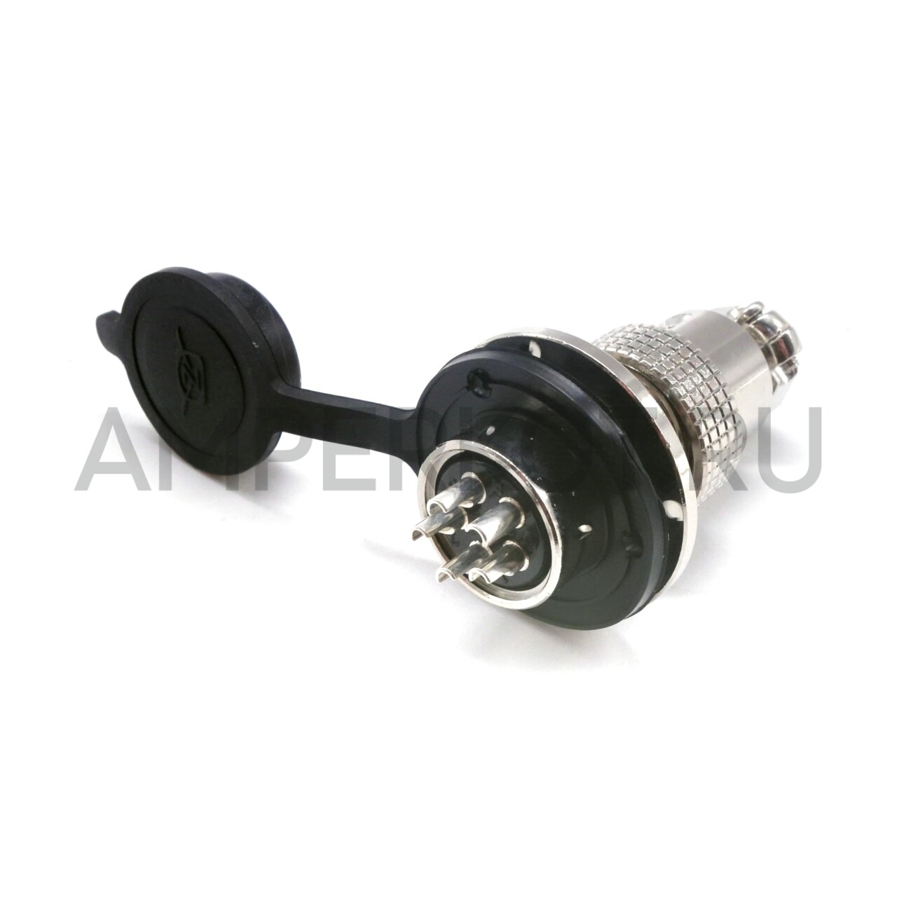 Комплект водонепроницаемого цилиндрического, кабельного разъема GX19 включает штекер, гнездо с фланцем для установки на панель, а также водо- пылезащитную крышку. Разъем имеет 5 контактов и позволяет коммутировать напряжение до 150V с максимальным током 5А. Корпус разъема изготовлен из цинковый сплав. Контакты медные, луженые, под пайку.