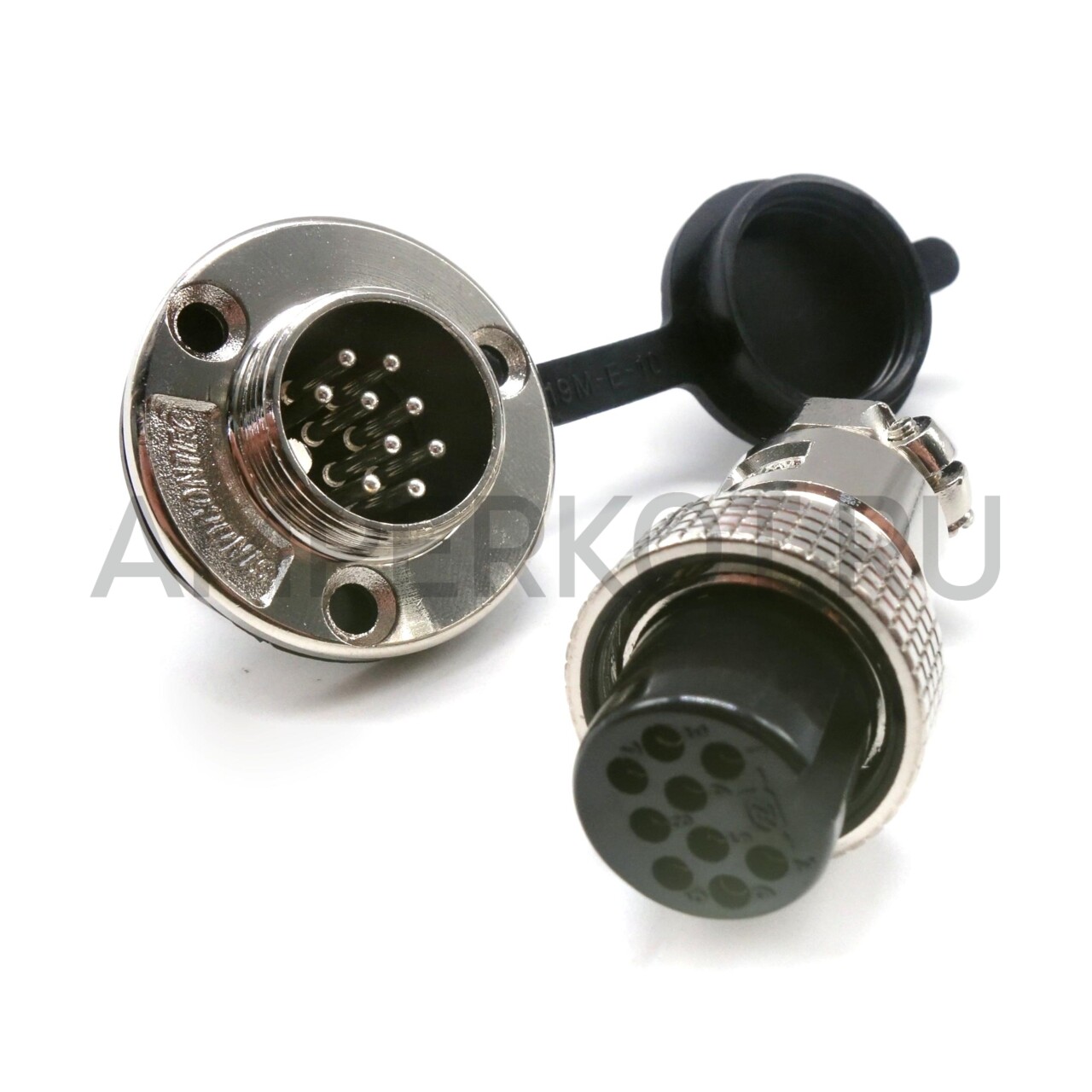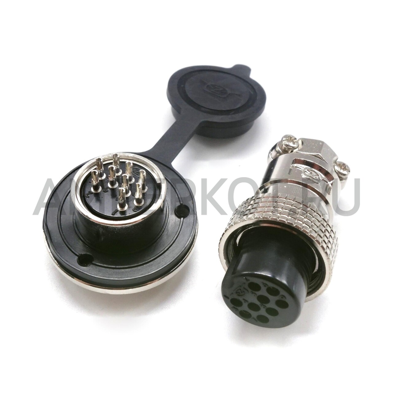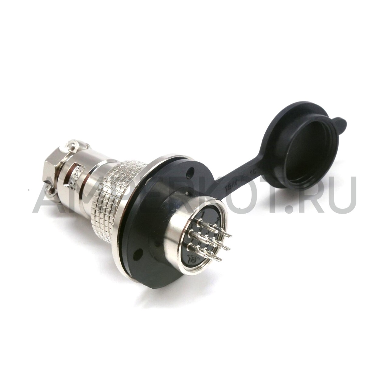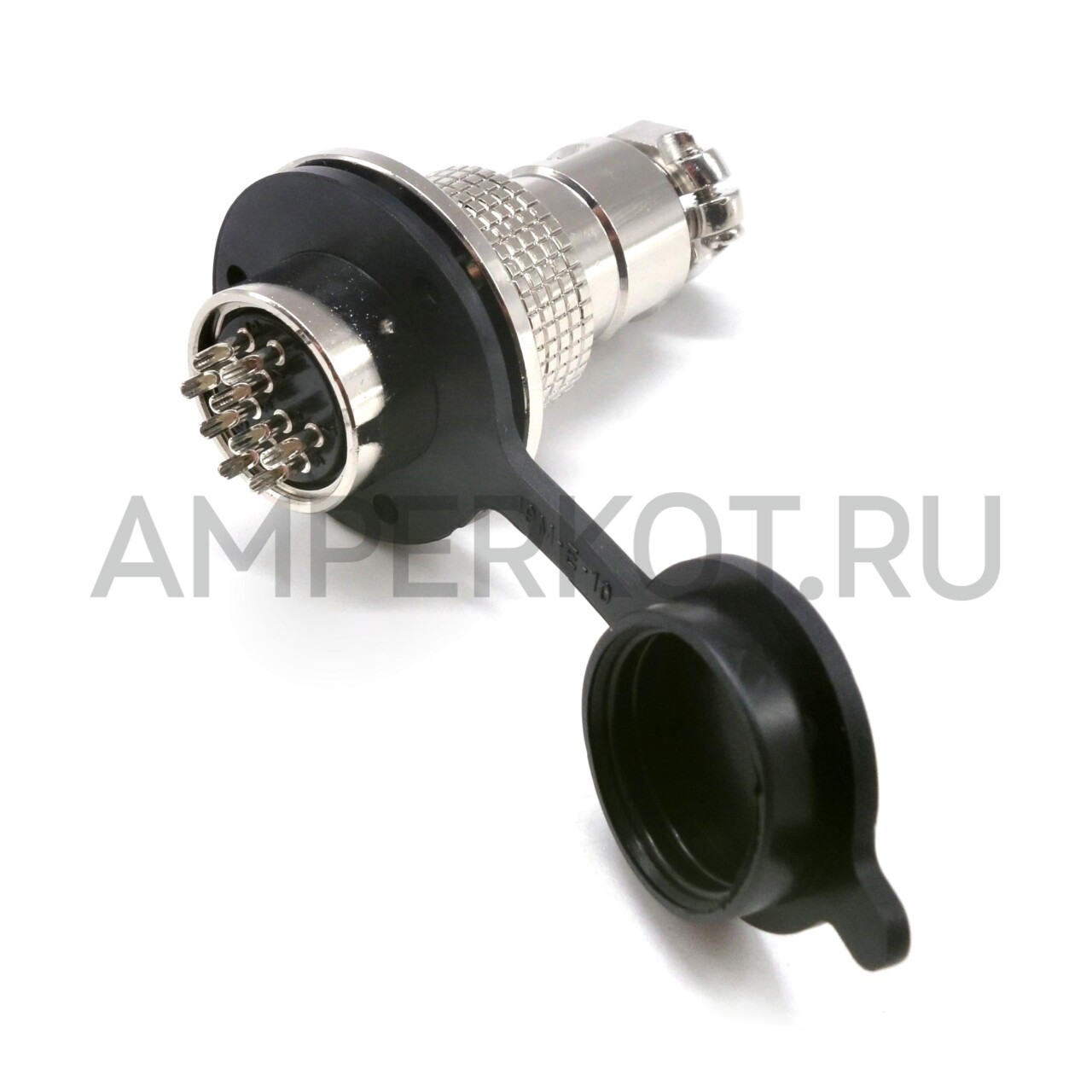 Комплект водонепроницаемого цилиндрического, кабельного разъема GX19 включает штекер, гнездо с фланцем для установки на панель, а также водо- пылезащитную крышку. Разъем имеет 9 контактов и позволяет коммутировать напряжение до 150V с максимальным током 5А. Корпус разъема изготовлен из цинковый сплав. Контакты медные, луженые, под пайку.